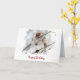 This birthday card features a very cold American Tree Sparrow sitting on a branch, all fluffed up to stay warm during a snowstorm full of blowing drifting snow. His distinctive red cap and breast spot identify him as this species of sparrow. All text can be customised to suit your needs.