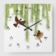 Tree Sparrows Kanji Numbers with Hiragana Square W Wall Clock