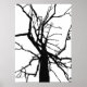 This fine art poster features an artistic, black and white abstract pattern of the top of a tulip tree in winter with bare branches in silhouette.