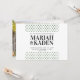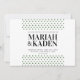 Small forest green triangles over a clean white background, make this minimal wedding invitation the perfect way to invite your guests to your outdoor wedding! Modern and sleek lettering keep this invitation simple and clean while the triangles can represent mountains or trees. Personalise the invitation by adding a photo on back, or delete the photo layer to find a coordinating green layer with space for the names of the bride and groom.