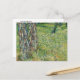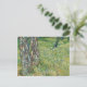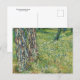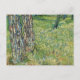 A fine art postcard with the post-impressionist painting by the Dutch artist Vincent van Gogh (1853-1890), Tree Trunks in the Grass (1890). A landscape of a grass meadow with wildflowers and abstract colourful trees.