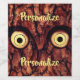 Features an owls face, made from brown treebark, with big yellow eyes. Rustic, whimsical and cute. Personalisation is optional.