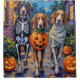 Adorable Treeing Walker Coonhounds dressed in playful Halloween costumes carry pumpkin buckets while trick-or-treating under the moonlit sky. This festive design highlights the breed’s tricolor coat, alert stance, and adventurous personality, perfectly capturing the spooky yet fun atmosphere of Halloween night. A charming celebration for Treeing Walker Coonhound lovers, dog enthusiasts, and Halloween fans alike.