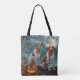 Unleash the spooky spirit with this eerie Halloween design featuring a pack of dogs under a dark, moonlit sky, surrounded by flying bats and glowing pumpkins. Perfect for those who love a touch of frightful fun with their furry friends!