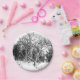 Paper plates in a Winter scene of snow-covered trees with a winter woodland background - digitally enhanced photography in black and white