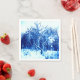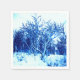 Paper napkins in a Winter scene of snow-covered trees with a winter woodland background - digitally enhanced photography in shades of cobalt blue