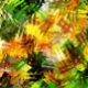 An impressionist design of sunlight streaming through trees.