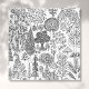 A fun hand-drawn black and white pen and ink illustration artwork of trees created by modern contemporary artist Julie Nicholls©.