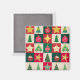 Trees, ornaments, and stars on red, green and ecru squares creates a cute and fun magnet with a mid-century aesthetic. Makes a perfect little stocking stuffer.