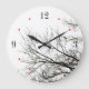 Custom wall clock with minimalist nature theme featuring black and white bare trees silhouette and flying bird. Numerals and red dots can be customised.