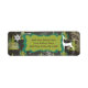 Holiday return address labels with starry night sky background with teal and lime green trees, a white silhouette reindeer, snowflake, and a teal and lime green frame with where you can easily add your name and address to customise.