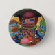 A pretty fantasy themed button that features a marker drawing of a fairy village built into the tops of several trees.