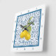 Trellis Scroll Lemon Branch Personalised Blue Square Wall Clock