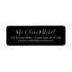 Present yourself with sophistication using this modern and elegant return address label featuring a timeless and elegant script font in classic black and white. Whether for professional or private use, this versatile template can be customised to suit your needs.
