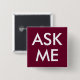 Elevate your professional attire with our dark burgundy button. Featuring the 'Ask Me' message in a classic and easy to read font, this accessory adds a professional touch to your look. Ideal for business settings, this button enhances your appearance with ease.---