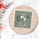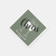 Solid muted greenish grey paper napkins from our "Trendy Christmas Colour Collection". Elegant dark sage not only for christmas. Customisable name / event and date. With champagne glasses and the word cheers on top of it.