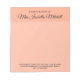 This modern and stylish pink / peach / coral Notepad, with customisable text "from the desk of", name in a classic black script font, and contact details, adds an elegant and minimalist touch to your organisational essentials.