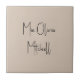 Elevate your home decor with our modern and stylish ceramic tile, featuring a customisable name in a charming handwritten font in classic black, looking like a signature.