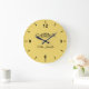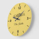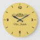 Modern and stylish Large Wall Clock with hours, decorative lineart element in tattoo style and customisable name in classic black.
