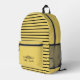 Modern and stylish Backpack with decorative lineart element in tattoo style and customisable name in classic black. .