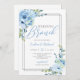 Trending dusty blue floral silver frame wedding invitation