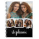 Trendy 4 Photo Collage Script Name White Black Notebook