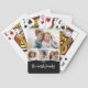 Trendy 4 Photo Collage Script Name White Black Playing Cards
