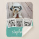 Trendy 4 Photo Collage Script Name White Teal Sherpa Blanket