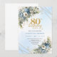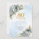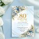 Trendy 80th Birthday Invitation Blue White Florals