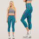 Trendy Abstract Geometric Angular Blue Pattern Capri Leggings