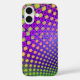 This case has a design with trendy decorative patterns. The main colours are purple, green and yellow. This product can be customised by adding text.