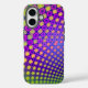 This case has a design with trendy decorative patterns. The main colours are purple, green and yellow. This product can be customised by adding text.