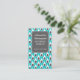 This interior designer business card has a bright aqua blue, grey, and white abstract vintage peacock feather design in the background on the front. You can easily customise the business information on the front and back.