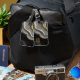 Trendy black and gold agate luggage tag which you can personalise with your name. This stylish design features a slice of agate with marbled lines in shades of black, grey and gold. The template is set up ready for you to add your name in bold typography. Please browse our store for coordinating gifts.