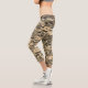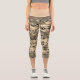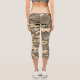 Black, tan and brown army fatigue camo print with a matching tan waist band on these trendy capri's.