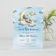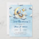 Discover a whimsical world within our "Baby Bear Slumbers" graphic. Our tender design features a charming baby bear, sound asleep upon fluffy white clouds, enveloped by a soft blue sky. The glow of a glistening golden moon gently illuminates this serene setting. A dance of shimmering gold stars complete this enchanting tableau. Perfect for a baby boy's shower invitation, it's a gentle embrace of tranquillity, sweetness and heavenly serenity. Let this delightful image inspire your celebration for a new arrival.