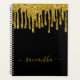 Trendy Black And Gold Glitter Drips Custom Name Planner