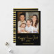 A trendy black and gold new year greeting card to personalise with family photo and name.