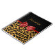 A trendy black and gold leopard print pattern notebook with a cute red ribbon bow wrapped like a present. Personalise by adding your name. Perfect present for the chic and elegant woman!