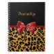Trendy Black and Gold Leopard Print Red Ribbon Bow Spiral Notebook