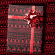 This highly trendy and festive wrapping paper features a classic Nordic/Fair Isle pattern reminiscent of the beloved Ugly Christmas Sweater style. The striking design uses bold bright red motifs, including reindeer, snowflakes, and Christmas trees, set against a deep black background for a powerful, eye-catching contrast. This paper is the ultimate choice for fun, modern, and lighthearted gift-giving during the holiday season. Use this iconic, festive pattern to delight recipients of all ages.