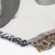 A quality printed throw has its advantages. This is a much finer weave throw than its loopier cousins, and though lighter, it is worth the investment for custom room accessorizing. The back is much prettier than the typical brown, and the fringe on the long sides very vivid, the selvage nicely done. Before photographing, I washed the throw in cold water, delicate, with a thicker woven throw the same size. On tumble dry low, this throw was dry in half the time as the other. This is a very practical quality if you use throws for furniture covers or to wrap up in frequently. The sleekness of the fabric makes it a great layer for accenting or protecting without the feeling of sitting on too much stuff. Perfect for napping or when you feel a light chill coming on. The color printing is beautiful and on this fabric, matched the design and color of my Photoshop image. This is an advantage for blending room fabrics and colors. The fringe on the short sides prints the colors from the design image and therefore varies from the side fringe. I streaked a white fractal line through the plaid pattern to give the illusion of weaving. This printed as crisp as an illusory thread, and put some white in the short side fringe, showing another advantage of print vs loomed- for artistic purposes, line lines, detail, and color integrity can be planned and preserved. My loomed throws have color limitations and more of a needlepoint texture. Print throws reproduce an exact image. The throw felt a little stiff straight out of the package, but this went away in the first delicate wash. Of course I searched the wash water for ink or bleeding and there was none.