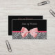 Spread the word about your fashionable new business with these cute and trendy black and white leopard print business cards with a girly pink ribbon tied in a bow. Personalise these animal print cards by adding the name of your boutique. Flat printed image, not actual ribbon.