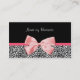 Trendy Black And White Leopard Print Pink Ribbon Business Card
