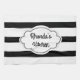 Very fashionable stripes, this kitchen towel is great for a newlywed, housewarming gift, or for the holidays. Featuring a black and white design with a beautiful white label in the middle, insert your text into the templates. Customise yours today!