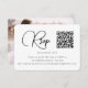 This modern wedding response card features a place for your QR code so that guests can easily rsvp on your wedding website. The front features a simple and clean black and white design with trendy lettering script typography. The back is one full photo.