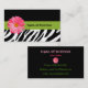 Spread the word about your awesome new business with these cute and trendy black and white zebra print business cards with a girly pink gerbera daisy.