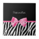 A trendy black and white zebra print pattern tile with a cute pink ribbon bow wrapped like a present. Personalise by adding your name. Perfect present for a teen girly girl!
