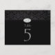 This elegant wedding table number post card has a black damask pattern border at the top with a soft black/grey border with an oval shaped diamond and silver jewel at the middle top. You can easily customise the table number at the bottom. This design is repeated on the front, and on the back. PLEASE NOTE: The diamond jewel is just a design, there are no actual jewels or diamonds on this card.