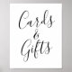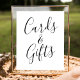 Add a touch of sophistication to your event with this elegant "Cards and Gifts" sign, featuring sleek black script on a crisp white background. Perfect for weddings, bridal showers, baby showers, and birthday parties, this versatile sign helps guests know exactly where to place their cards and gifts while enhancing your decor. Personalise it with custom text such as your names, wedding date, or a heartfelt thank-you message to make it uniquely yours. Whether for a grand celebration or an intimate gathering, this stylish sign is a functional and beautiful addition to your special day.